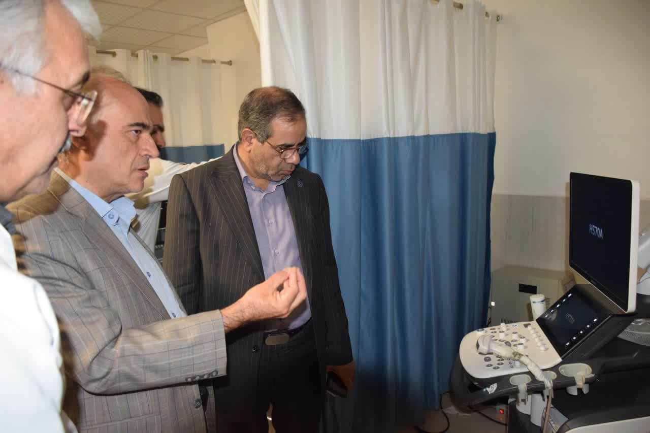 در این بازدید، دکتر بحری، مدیر بیمارستان، و دکتر نفیسی، مدیر گروه رادیولوژی دانشگاه، ضمن بررسی امکانات موجود و نیازهای فعلی، توضیحاتی ارائه کردند.